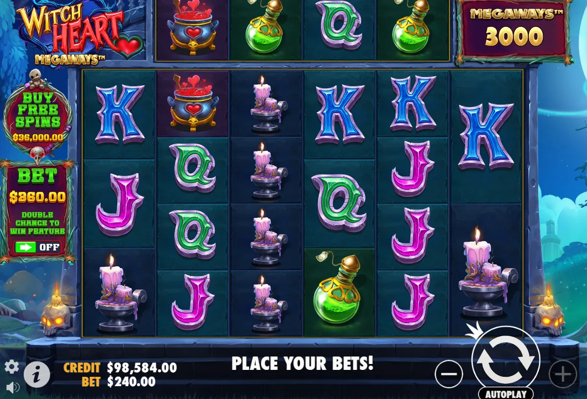 This well-structured paytable, combined with special symbols and dynamic reels, ensures every spin is packed with potential and excitement, making Witch Heart Megaways a standout choice for fans of feature-rich slots.