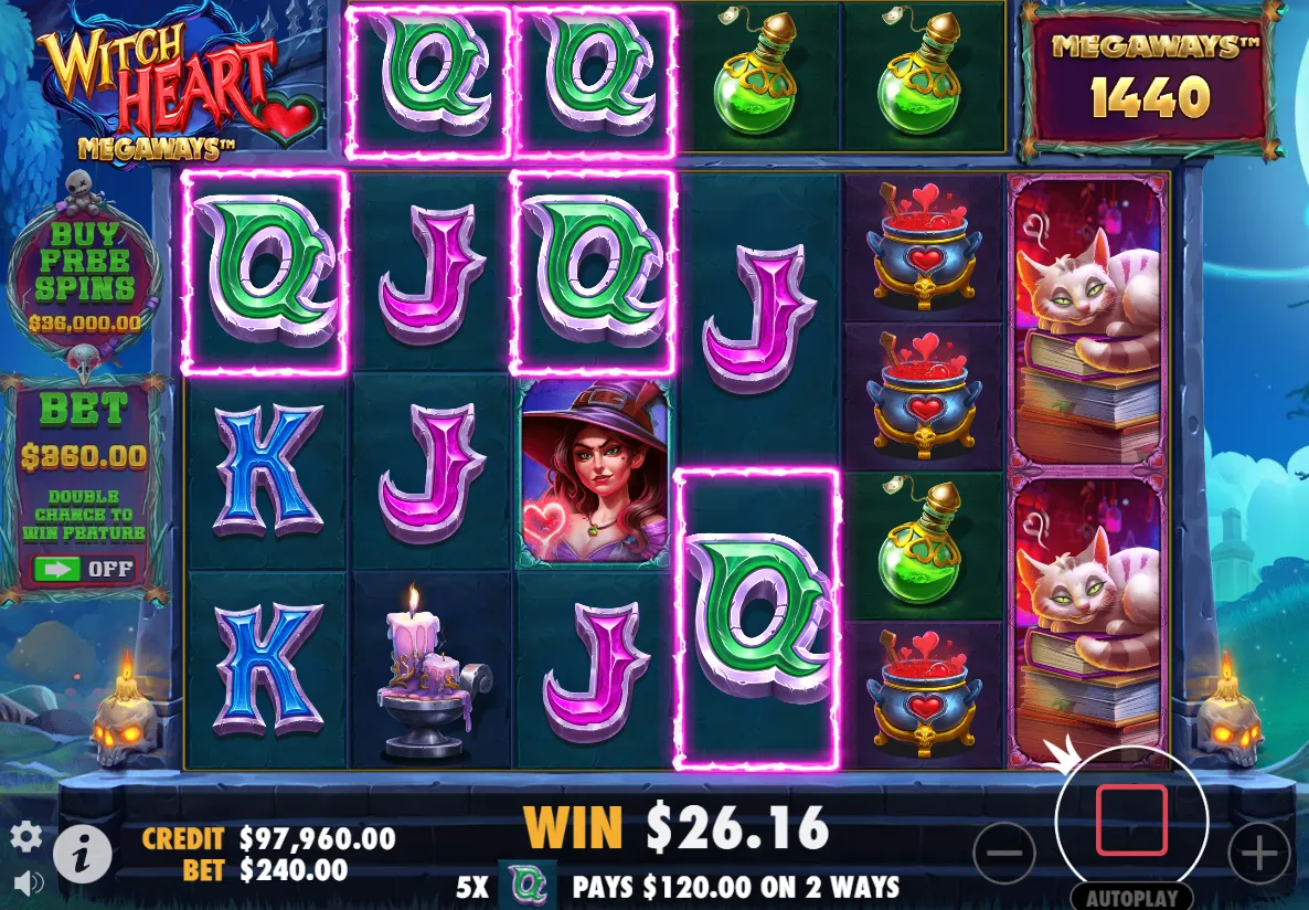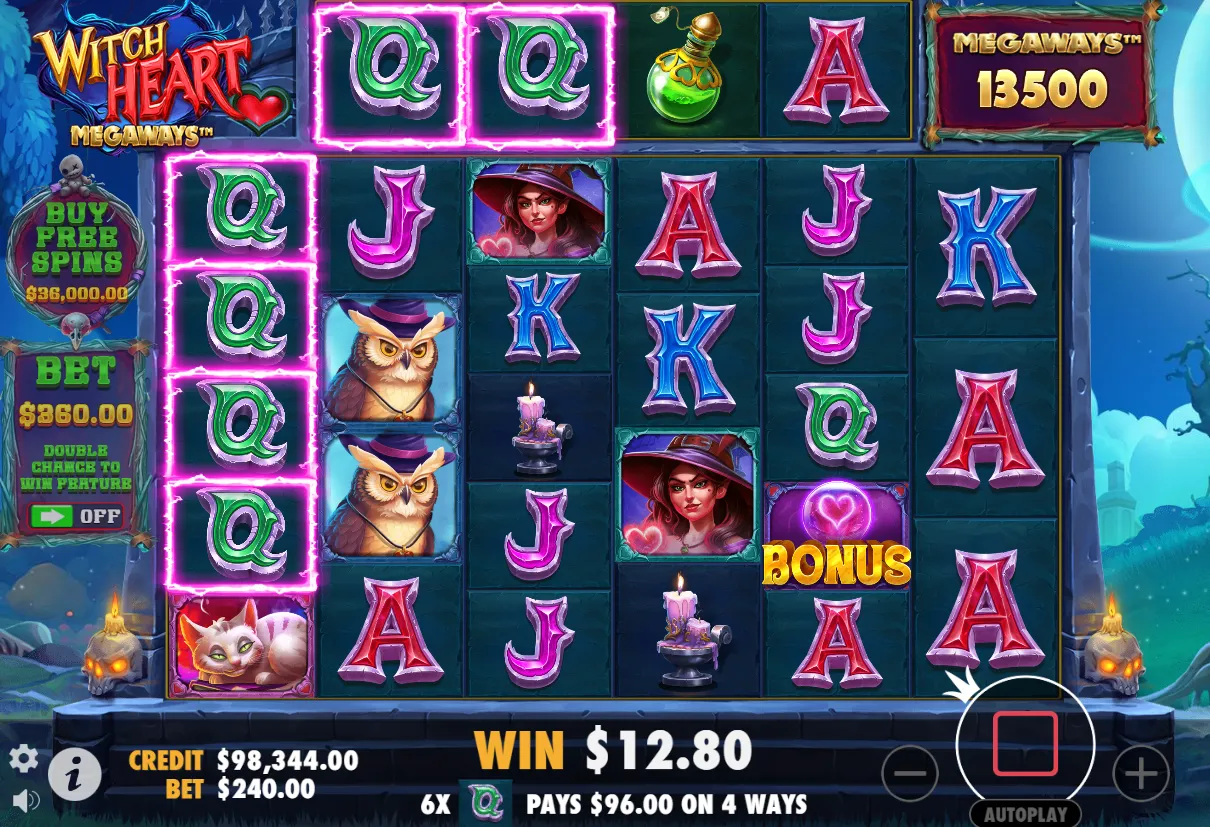 All users can try the Witch Heart Megaways demo version for free right at the top of this page. The demo allows you to experience all the features, mechanics, and bonus rounds of the slot without risking any real money. This is an excellent way to get familiar with the gameplay, test strategies, and see how the bonus features work before deciding to play for real stakes. We highly recommend trying the Witch Heart Megaways demo first, as it gives you a risk-free opportunity to explore everything the game has to offer and ensures you know exactly what to expect when you switch to real money play.